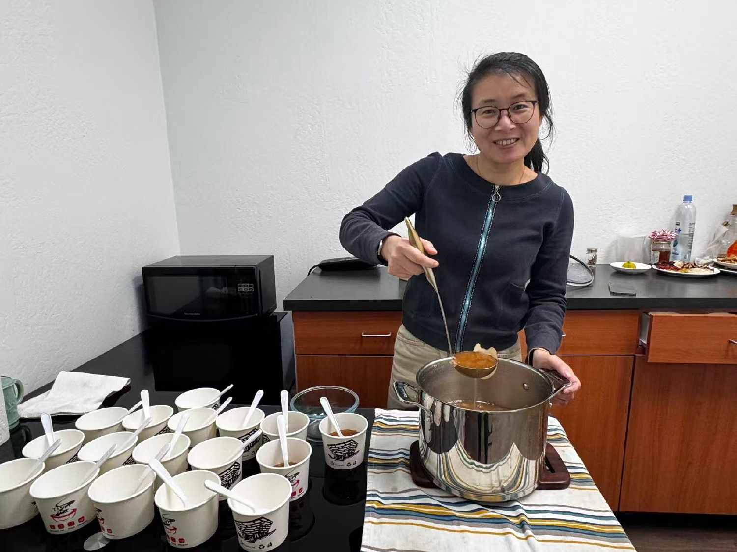 With the arrival of the New Year, attendance was especially strong. More than 40 guests filled the tea room, representing multiple generations as well as diverse backgrounds, including Chinese, Hispanic, and White community members. Two attendees in their 90s, affectionately known as “Aunt Gail” and “Aunt Louis,” enjoyed the soup and tea with visible delight, contributing to the warm and lively atmosphere.