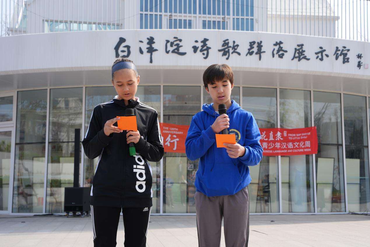 On March 31, students from West County Mandarin School in San Francisco, USA, recited Chinese poetry at the Baiyangdian Poetry Cultural Park.(CNS)