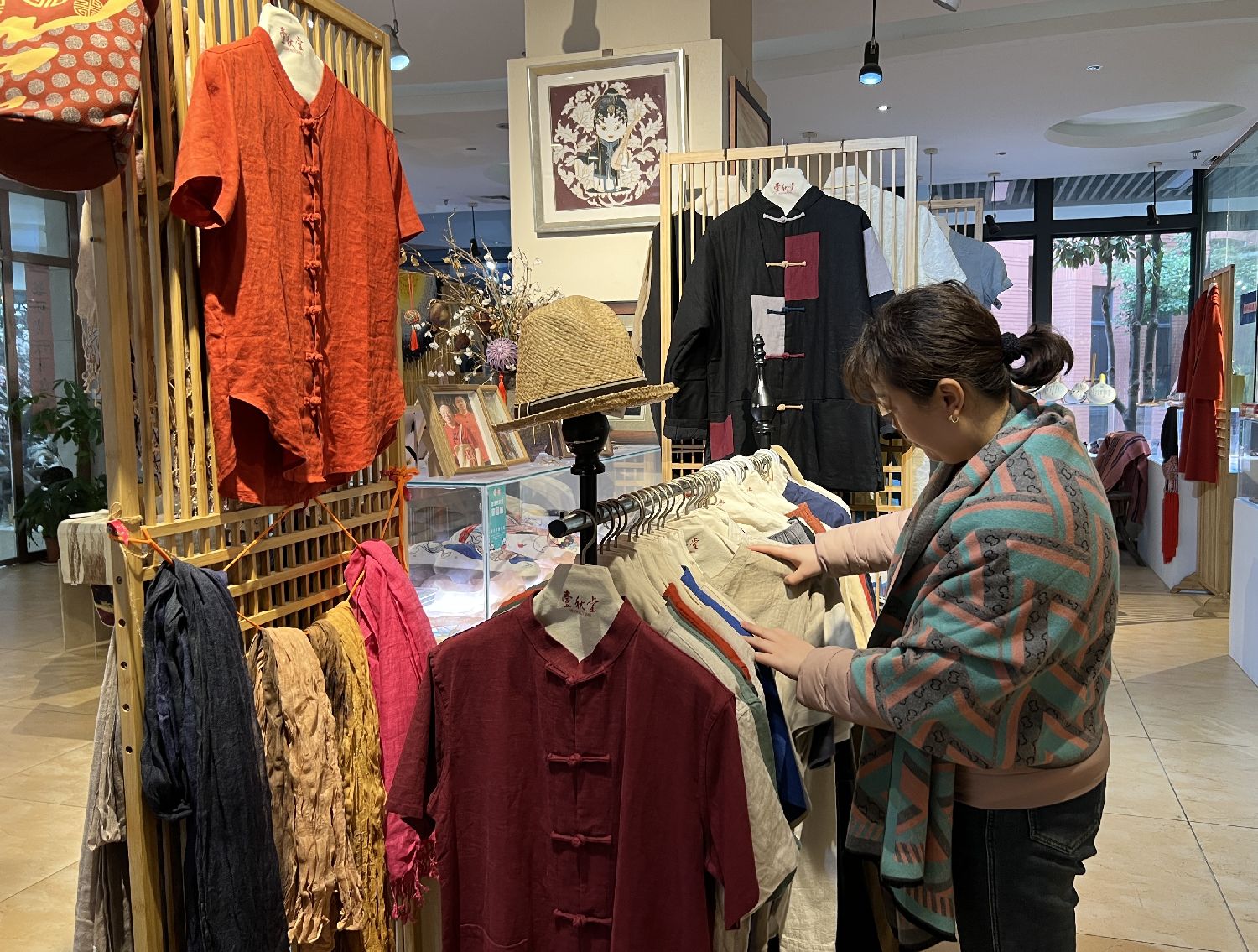 Qi Tao has been engaged in the preservation and promotion of ramie weaving for over twenty years. In her view, safeguarding intangible cultural heritage does not mean locking traditional crafts in museums, but integrating them into modern life. To make ramie products aesthetically appealing, practical, and meaningful, her team focuses on cross-disciplinary innovation under the concept of “ramie + design,” developing more than a thousand varieties, including Xiabu fans, paintings, bags, clothing, accessories, sachets, and cushions.